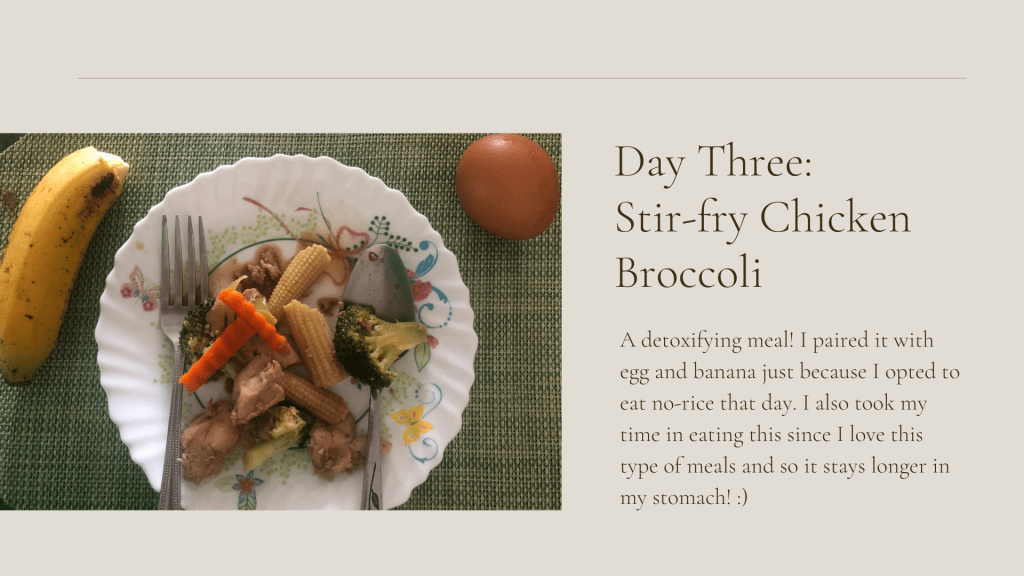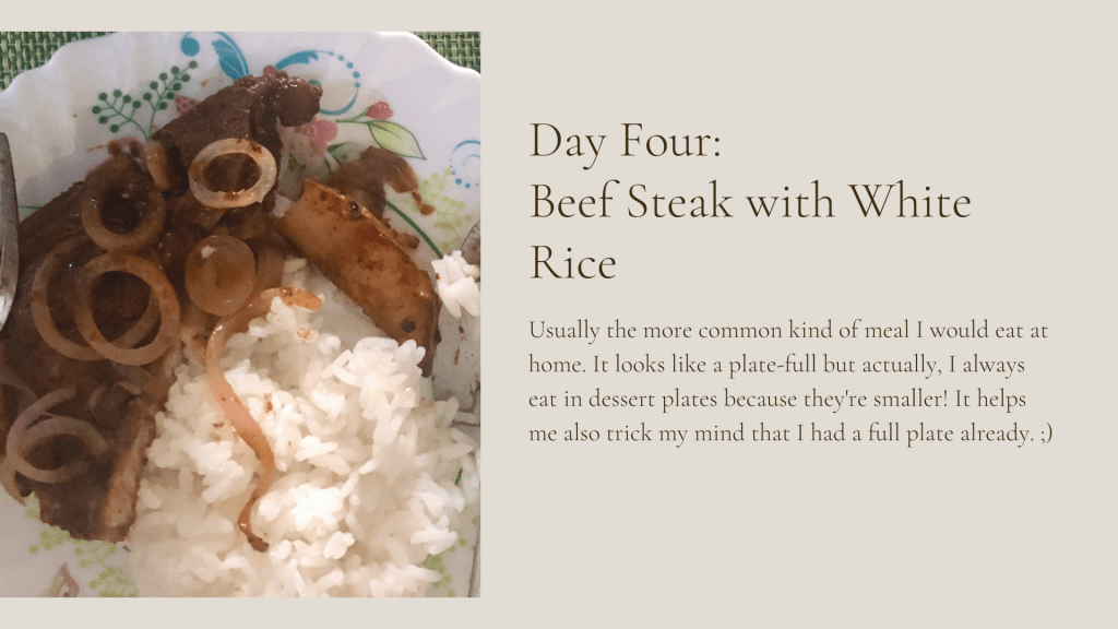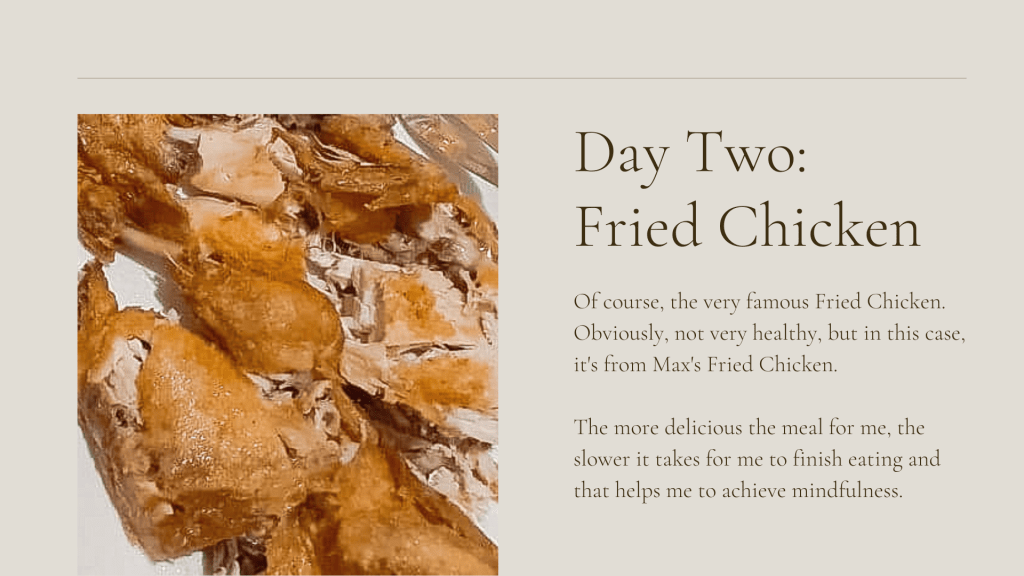 I documented some of the foods I ate while I am doing my mindful eating habits. Mind you that during this process, I was slowly trying to get off my mobile phone why I eat. It’s still not consistent and I am trying to break the ugly habit of scrolling through my work messenger and Facebook during my breaks.